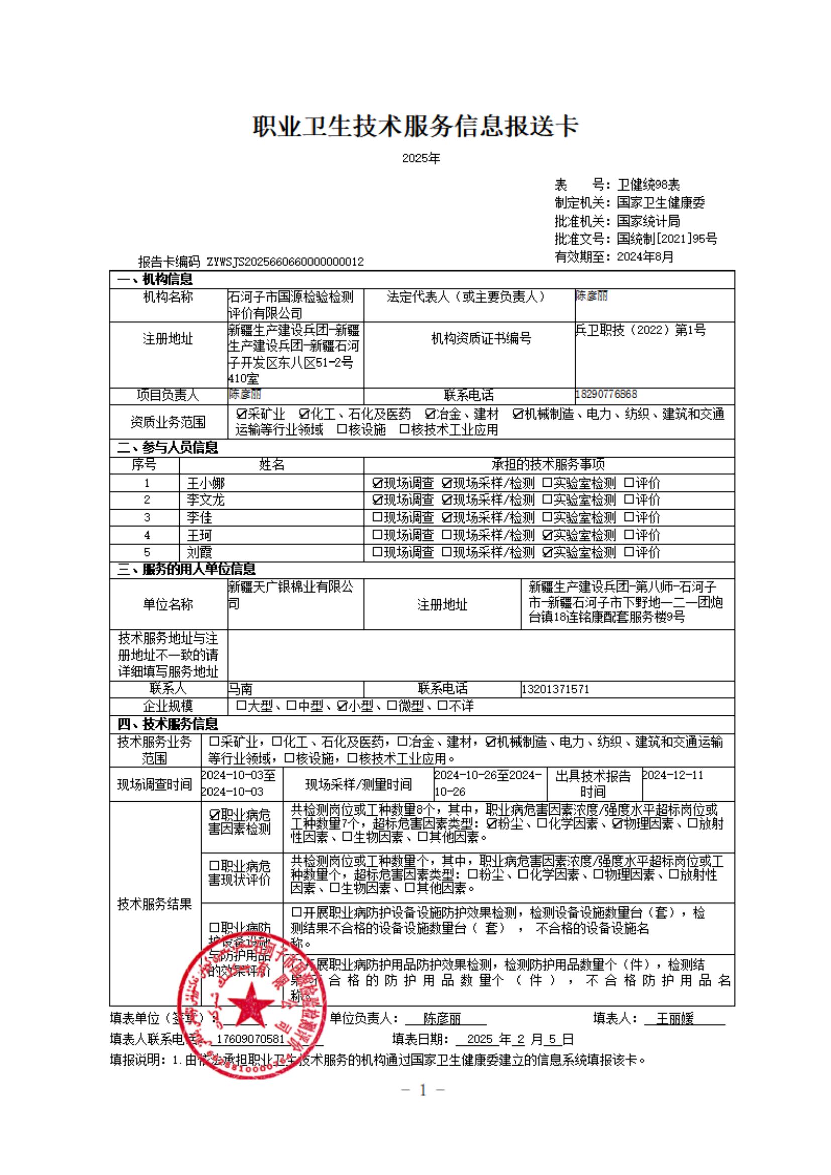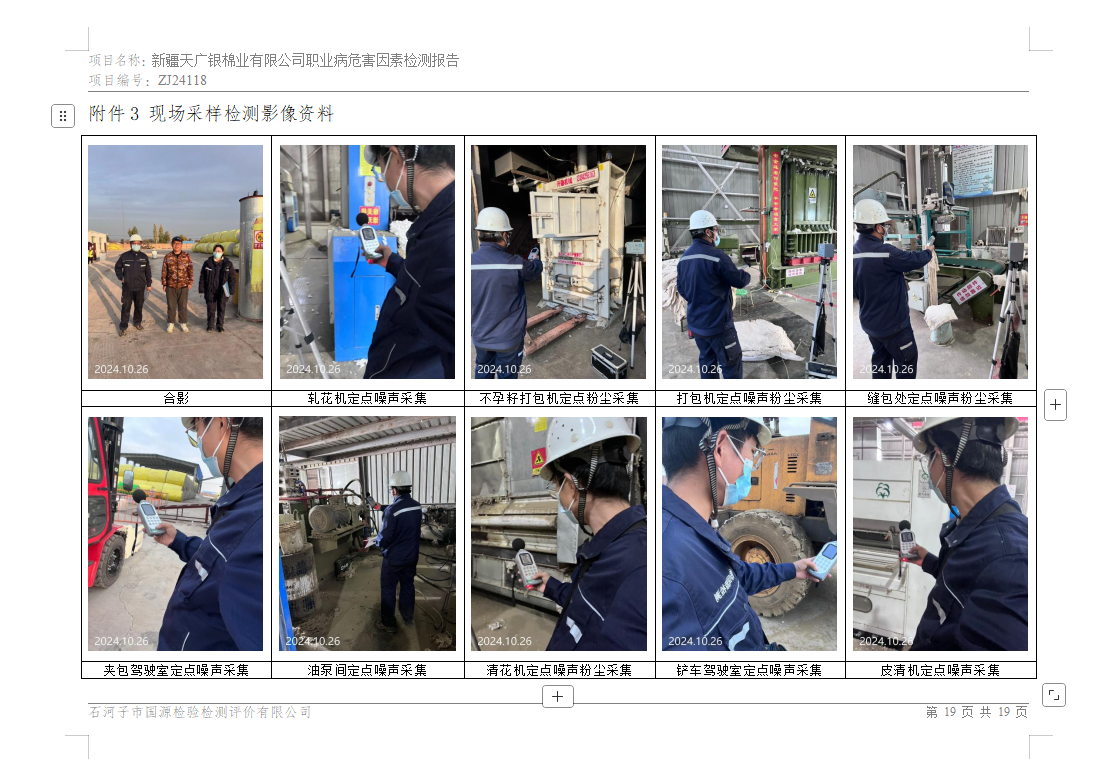 新疆天广银棉业有限公司职业病危害因素检测